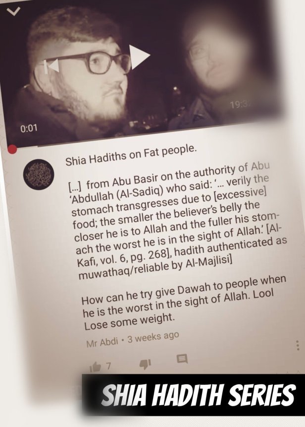 What a great ascetic infallible, so oppressed he was, poor soul was eating his feelings, eating out of frustration, becoming so fat (fatter than Mu’awiyah?) that he could barely praying except in the sitting position, damn those Nasibis! They probably forced-fed him with high that fatty Saudi Mandi (delicious tho!). Shiites must be proud of these rolemodels, but they better don’t inform no fast-food chains about this uber-fat saint otherwise they will turn him into a mascot.