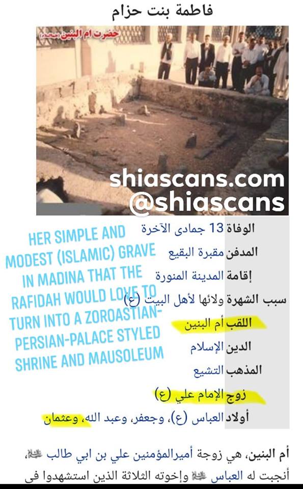 Umm Al-Banin is excessively revered in Twelver Shi’ism, so is her son Abu Al-Fadhl, yet when was the last time you heard Shi’ites speaking about her other son ‘Uthman son of ‘Ali ibn Abi Talib? When was the last time they invoked him, and waved flags with his name written on?