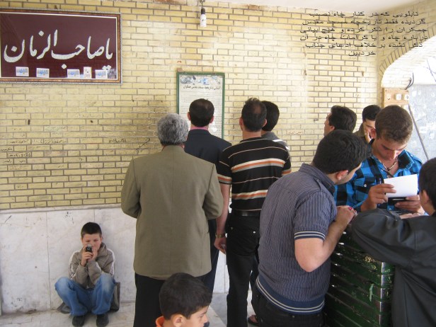 One of the most common ways of petition-writing is carried out in Jamkaran temple near Qum. One of the most prevalent ways for expressing demands to the 12th Imam is petition-writing and throwing these in a well in the mosque.