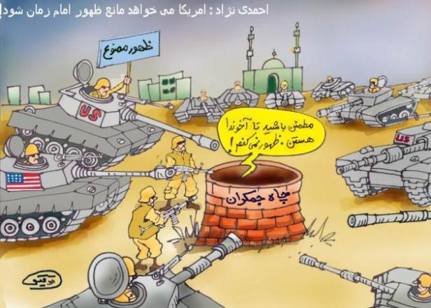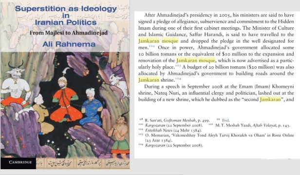 Ever since he became mayor of Tehran in 2003, Mahmoud Ahmadinejad was one of the first to see how enormously useful the cult could be. He put forward the idea of building a road from Tehran to the ‘mosque’ under the pretext that when the time for his grand reappearance comes, the 12th Imam will need it to reach the capital. As the mayor of Tehran, he asked the City Council to reconfigure the capital to accommodate the Imam’s imminent coming. Once he became president, he repeatedly invoked the name of the great Imam and had his cabinet members visit the Jamkaran mosque at the outskirts of Qom and drop notes of allegiance in its famed well. A budget of 1,200 billion rials (120 million US dollars) was put aside for it, millions of dollars are every spend on the birthday (!) of the 12th Imam. This enabled the Jamkaran site to expand by 250 hectares, add 14 minarets, eight gates and a vast car park.