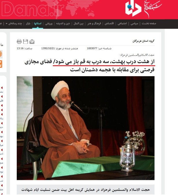 “Paradise comprises of eight gateways and one of it is exclusive for the people of Qum. So glad tidings to them (people of Qum), glad tidings to them, glad tidings to them.”