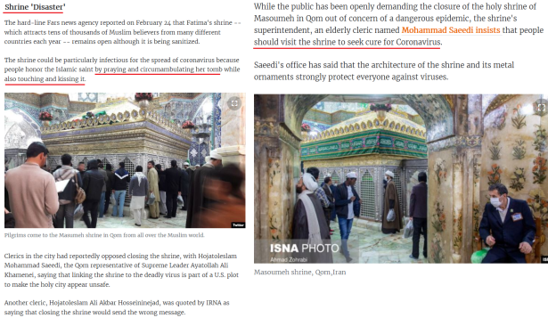 Qum, the epicentre of Coronavirus in Iran? So what? Though shall not worry, for not just Qum but even its surrounding areas are save from every calamity! All Shia clerics in particular should seek refuge in Qum as soon as possible, the world will thank them!