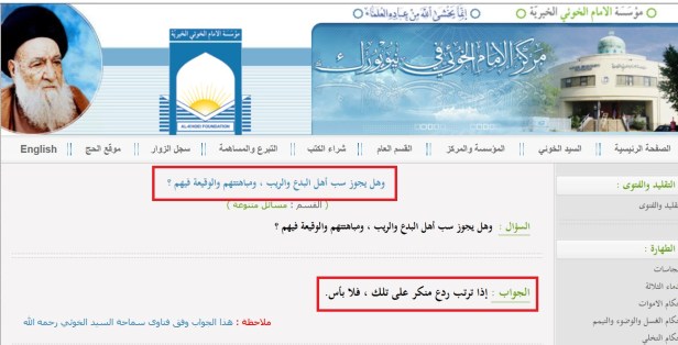 Another similar fatwa straight from the official Khoie website that is run by his Ayatullat mafia clan: