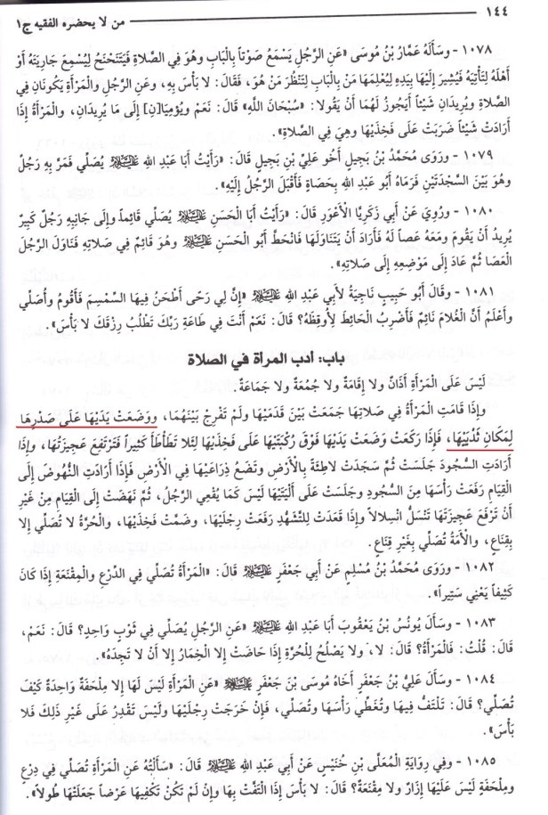 (Taken from my personal copy of Al-Sadooq’s Man Laa YaHDuruh Al-Faqeeh, vol. 1, Chapter: Etiquettes of Women in Salaah, pg. 144)