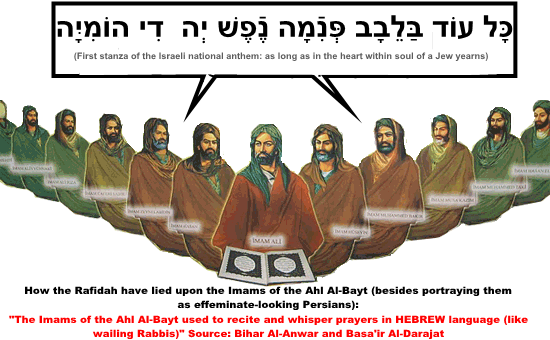 Their Imams secretly whispered supplications in Hebrew! According to Rafidi understanding, their Imams embody the Sunnah. This implies that the Rawafid should emulate their Imams and start whispering supplications in Hebrew (much like Rabbis today). I’m sure Israel would be delighted to offer them a prime spot next to the WAILING wall (Jews wail in a manner similar to Rawafid as a form of worship, incessantly), where they can both wail and murmur in Hebrew.